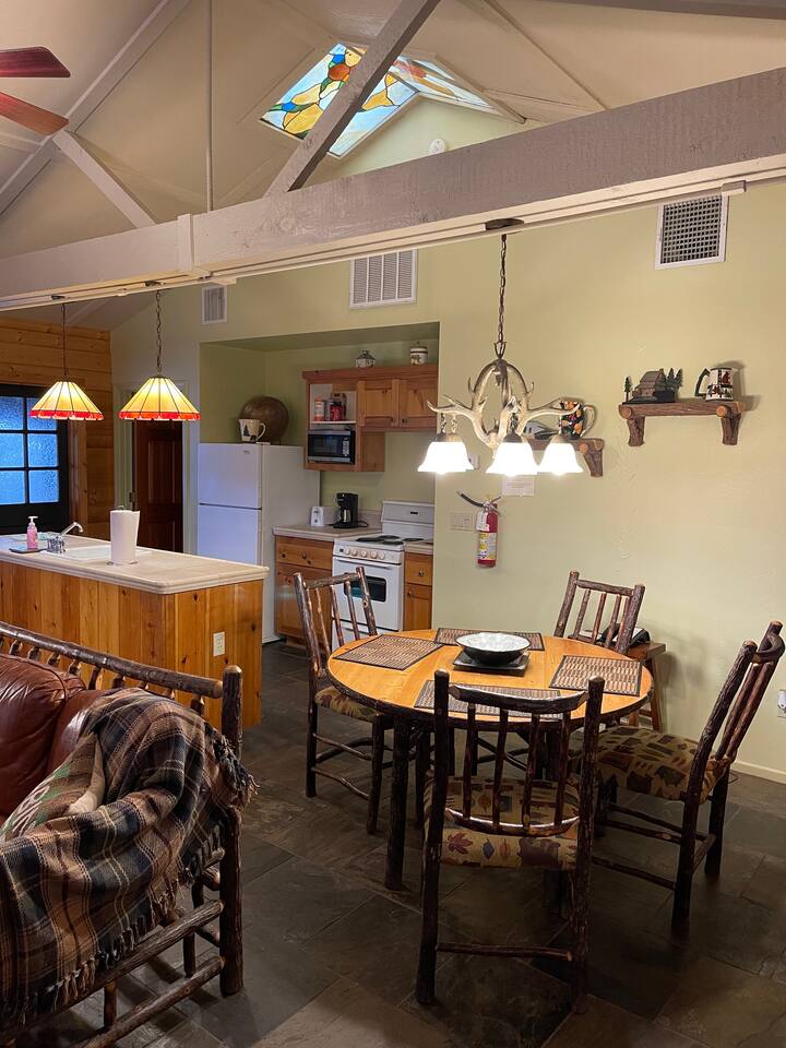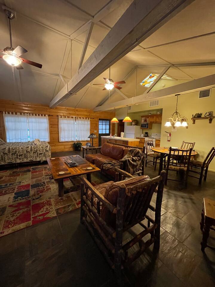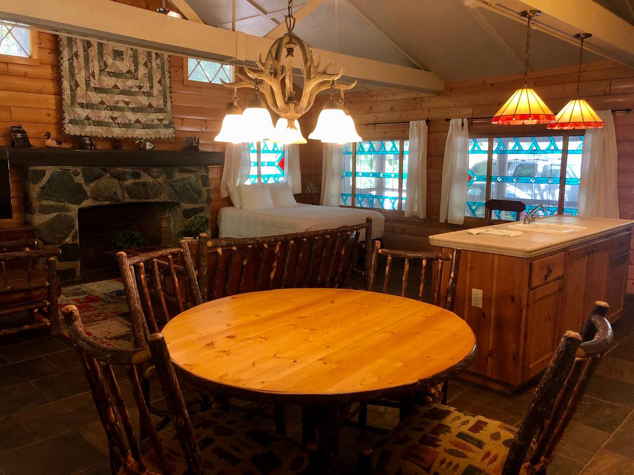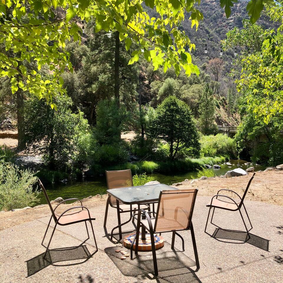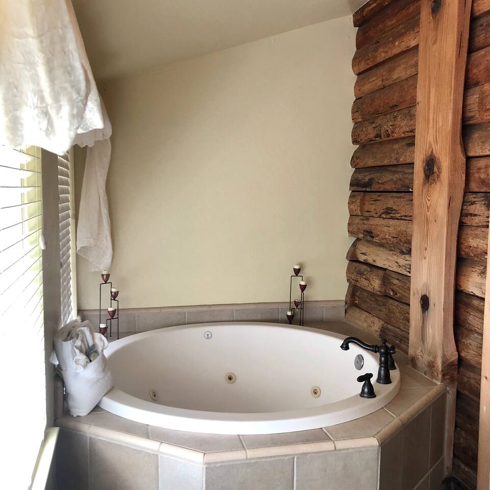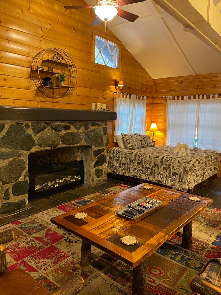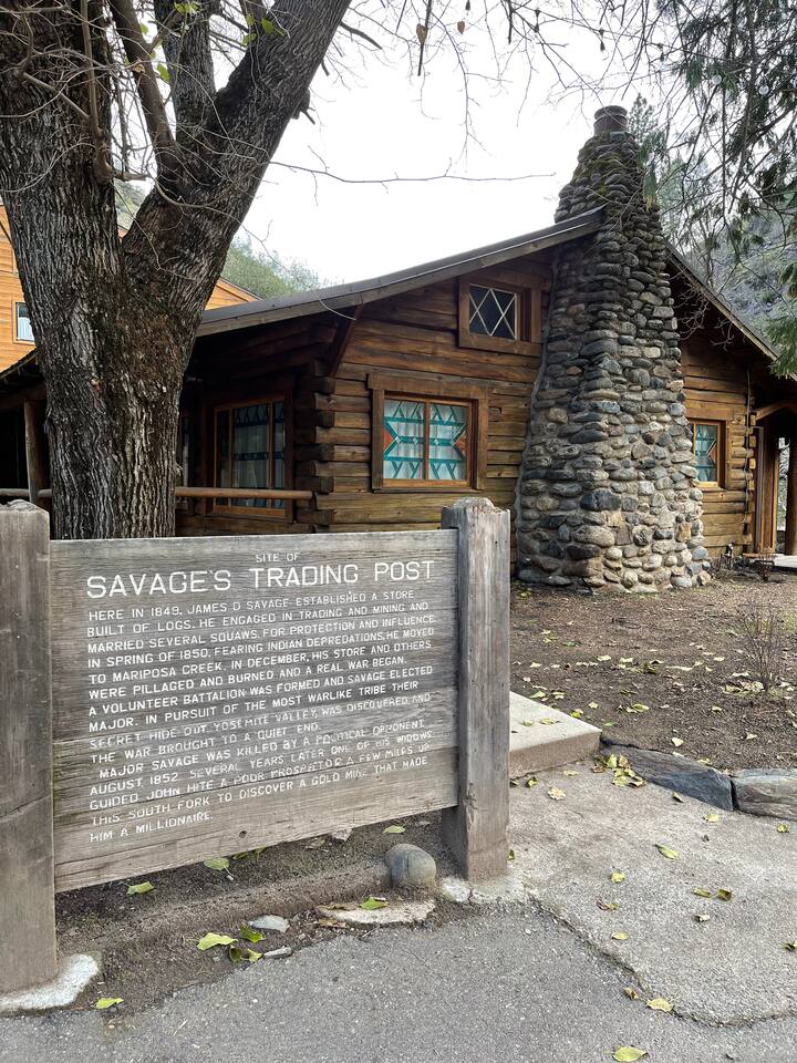 Miner James D. Savage established a bona fide trading post just outside Yosemite Valley near El Portal back in 1849. These days, wonderfully rebooted, it serves as a unique vacation property, which is ideal for families, friends, and couples. The lovely Log Cabin is a cozy one-bedroom cabin ideal for honeymooners or those who want a romantic getaway— or for a writer finishing a book or memoir, actually. The spacious one-bedroom cabin sits right along a flowing river and includes a prominent living room, kitchen, dining area, Jacuzzi tub, and more. There is also a queen bed in the open space. The Log Cabin at Savages is designed for cozy comfort after a fun day in nature. Note: We use Starlink for WiFi. Due to our remote location WiFi is not always reliable.