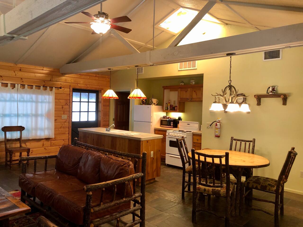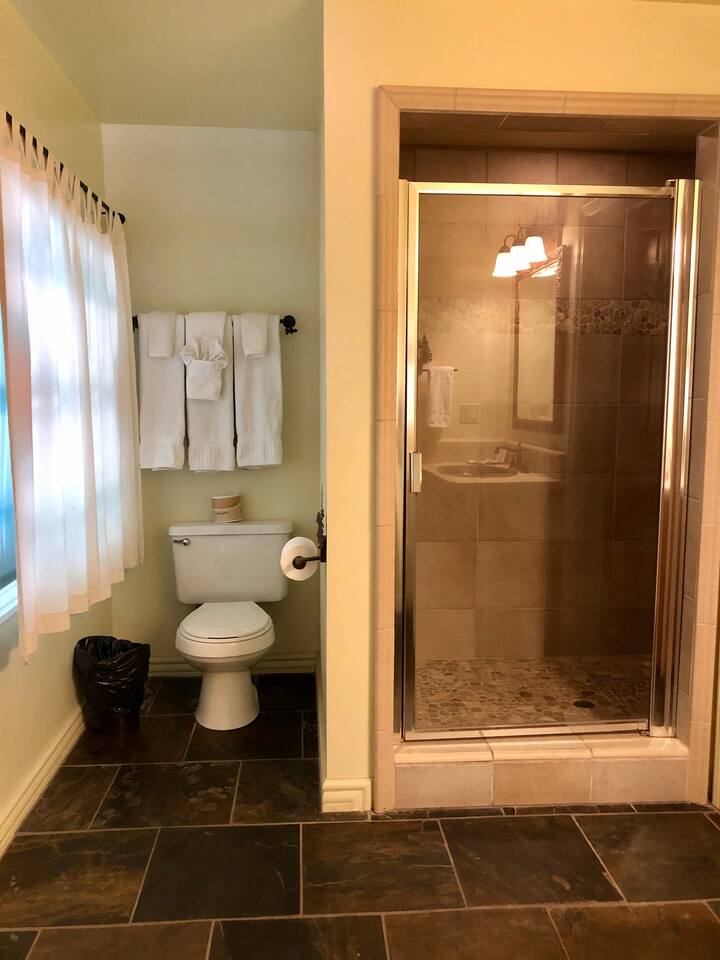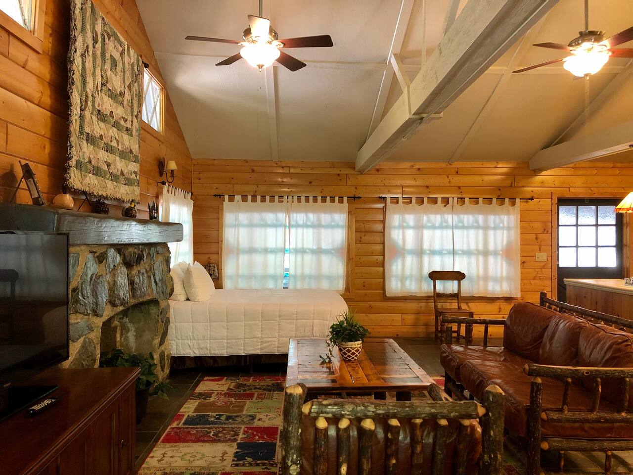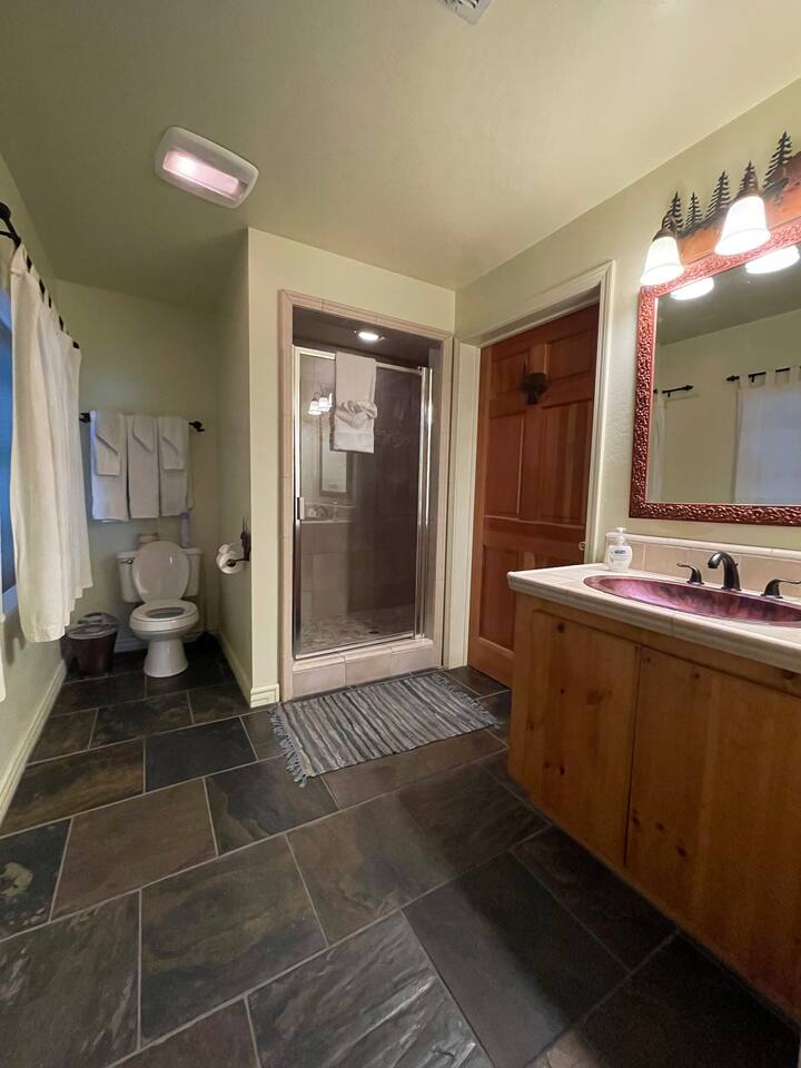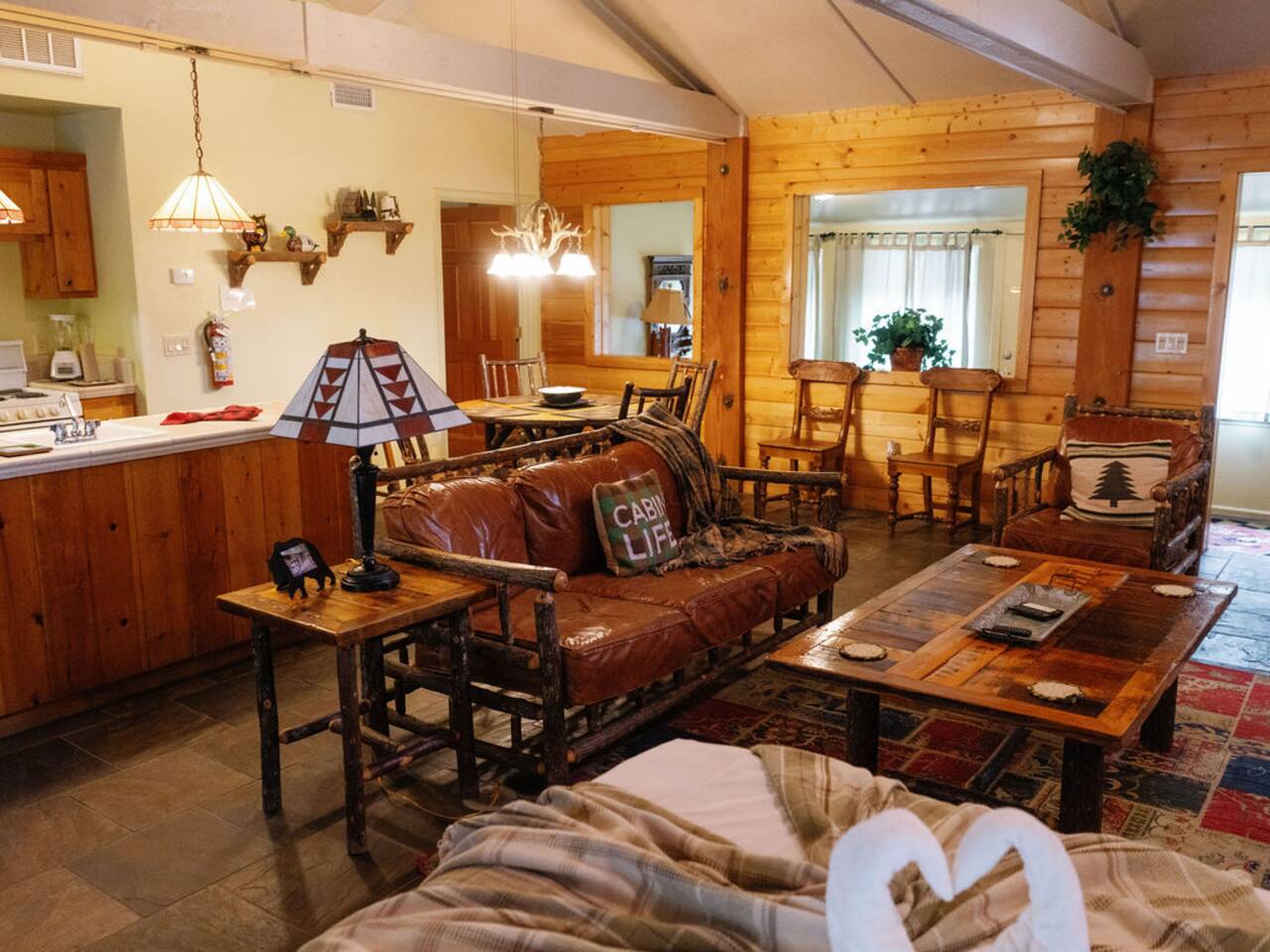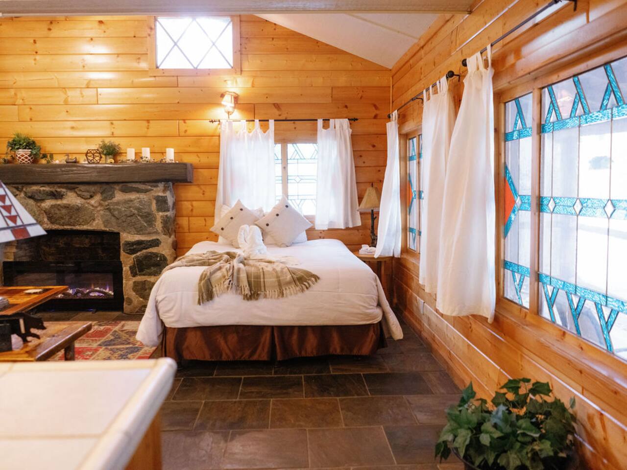 Miner James D. Savage established a bona fide trading post just outside Yosemite Valley near El Portal back in 1849. These days, wonderfully rebooted, it serves as a unique vacation property, which is ideal for families, friends, and couples. The lovely Log Cabin is a cozy one-bedroom cabin ideal for honeymooners or those who want a romantic getaway— or for a writer finishing a book or memoir, actually. The spacious one-bedroom cabin sits right along a flowing river and includes a prominent living room, kitchen, dining area, Jacuzzi tub, and more. There is also a queen bed in the open space. The Log Cabin at Savages is designed for cozy comfort after a fun day in nature. Note: We use Starlink for WiFi. Due to our remote location WiFi is not always reliable.