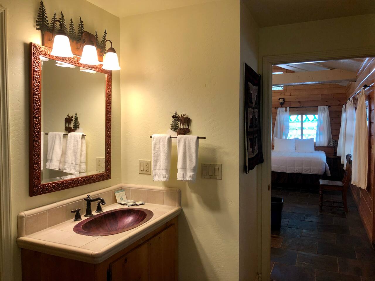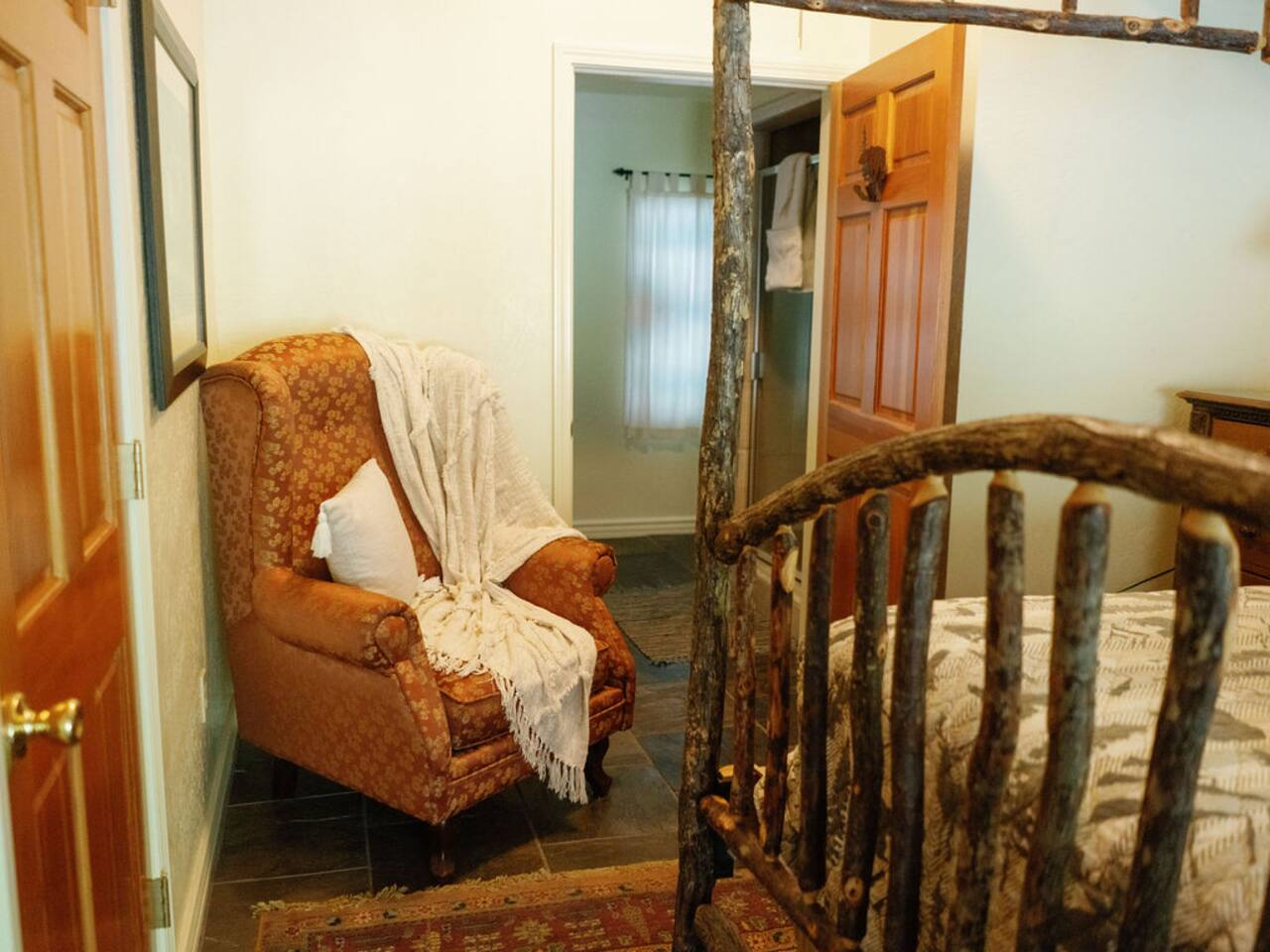 This restored log cabin sits along the Merced River, just 10 miles from Yosemite National Park’s Arch Rock entrance and 21 miles from Mariposa. Built near the site of an 1849 Gold Rush trading post, it’s a rare mix of California history and natural beauty.