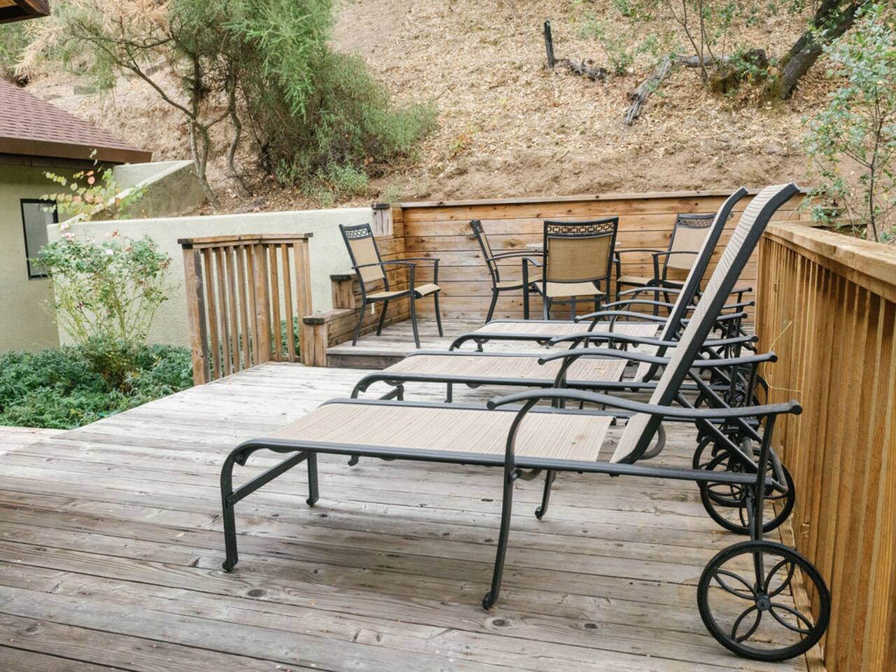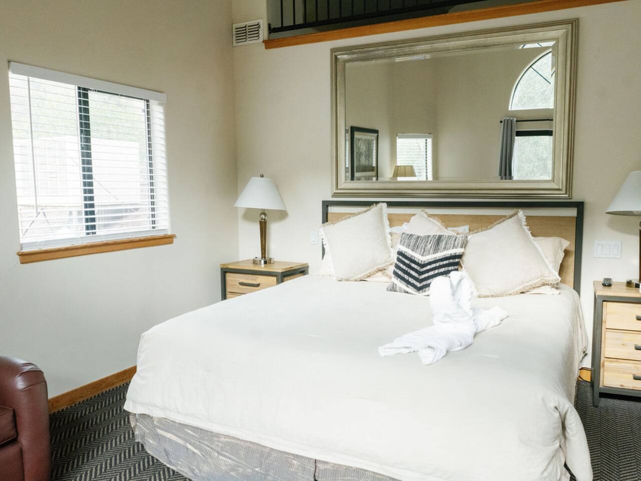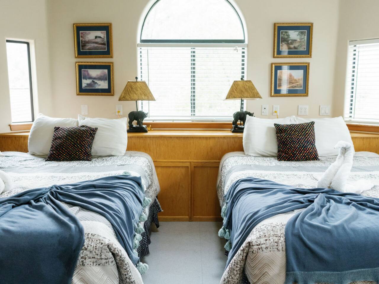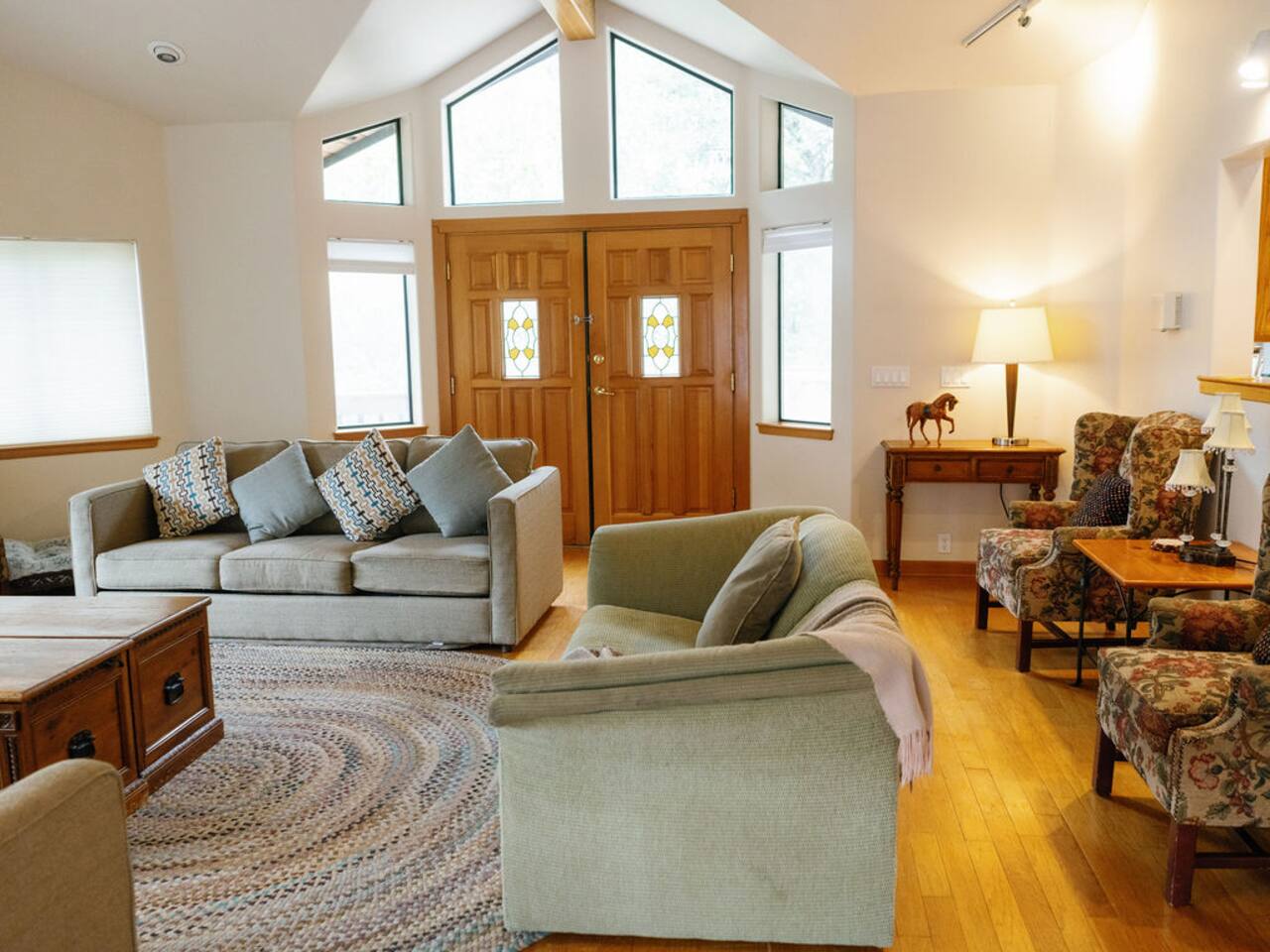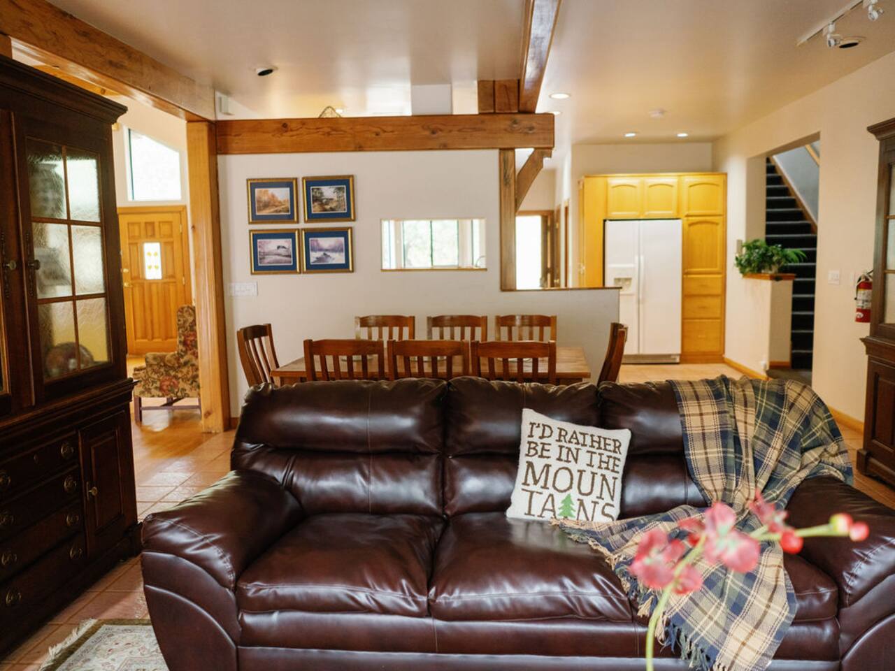 Hunter House offers plenty of room to relax, reconnect, and enjoy time in the mountains — just 10.6 miles from Yosemite National Park. The main home features four bedrooms and generous shared spaces throughout. The master suite includes a king bed, a large private bath, and access to the outdoor shower. Two additional bedrooms have two queen beds each, while the fourth bedroom features a king bed and a cozy loft. A queen-size sofa sleeper is available in the living room for additional guests. The home also includes a spacious dining area, a full kitchen, a separate family room with additional sleeper sofas, and balconies that bring you even closer to nature. A separate, private-entry unit with two queen beds and its own full bathroom is also available to rent upon request — perfect for additional friends, family, or those looking for a little extra privacy.