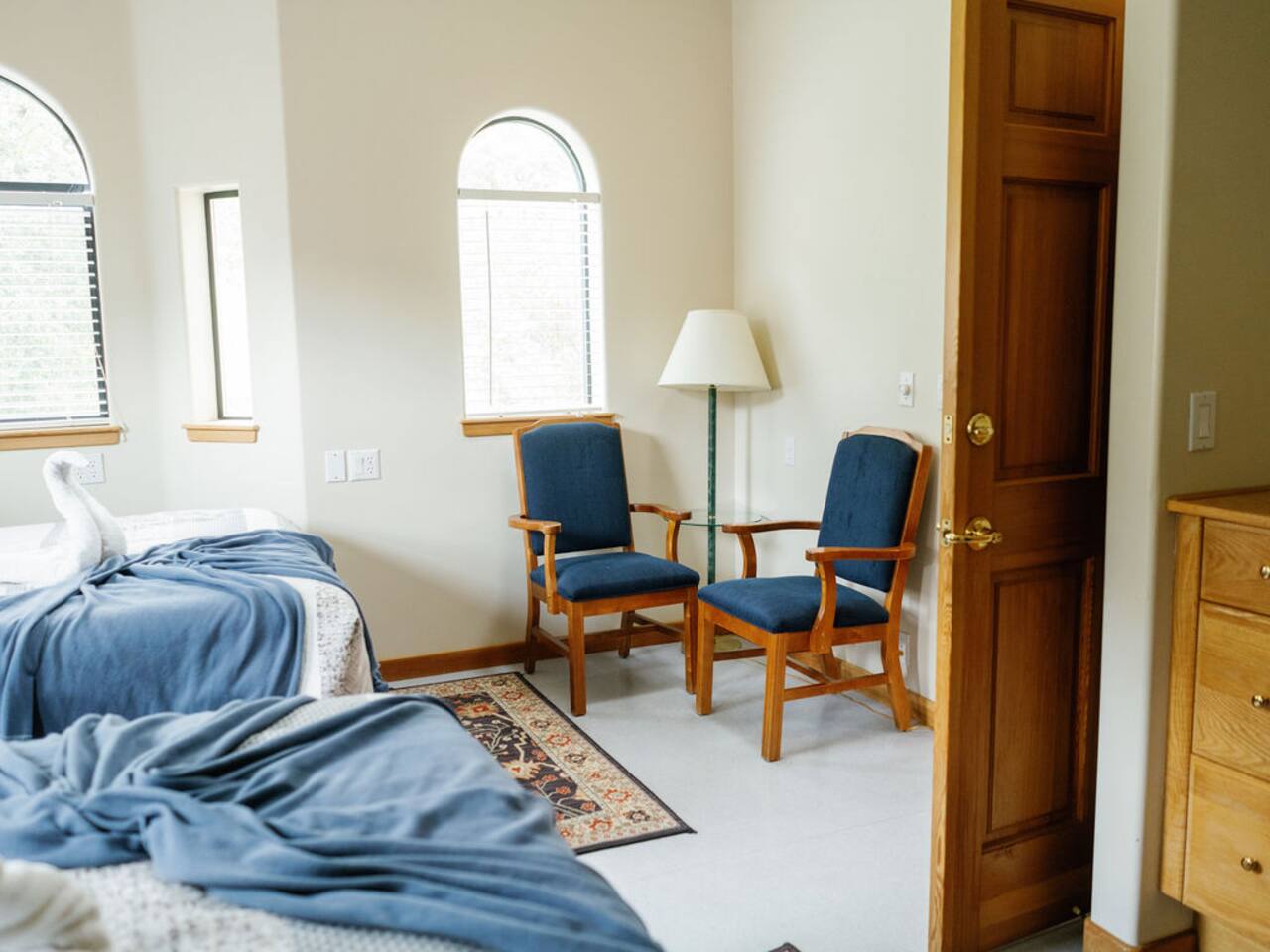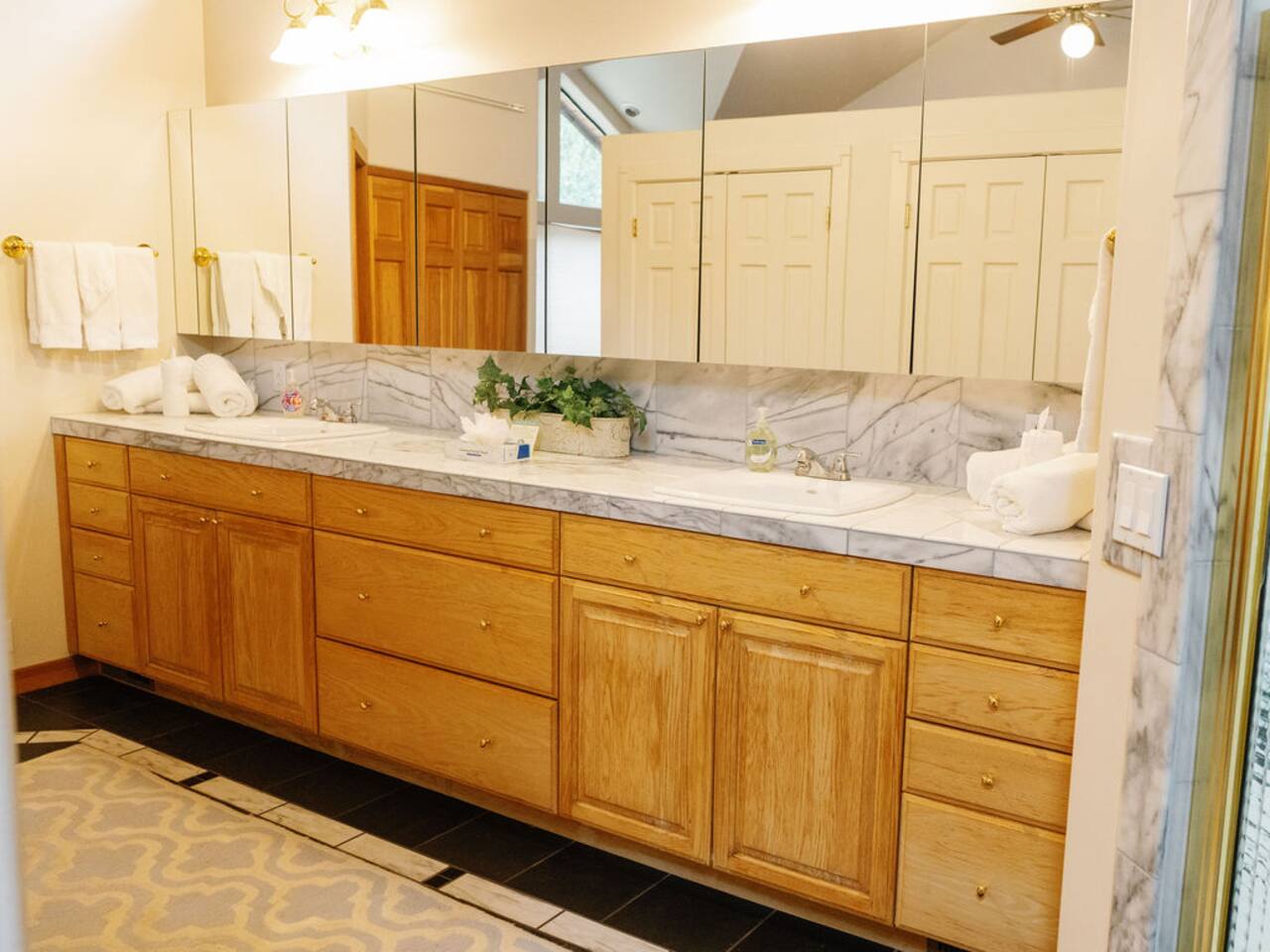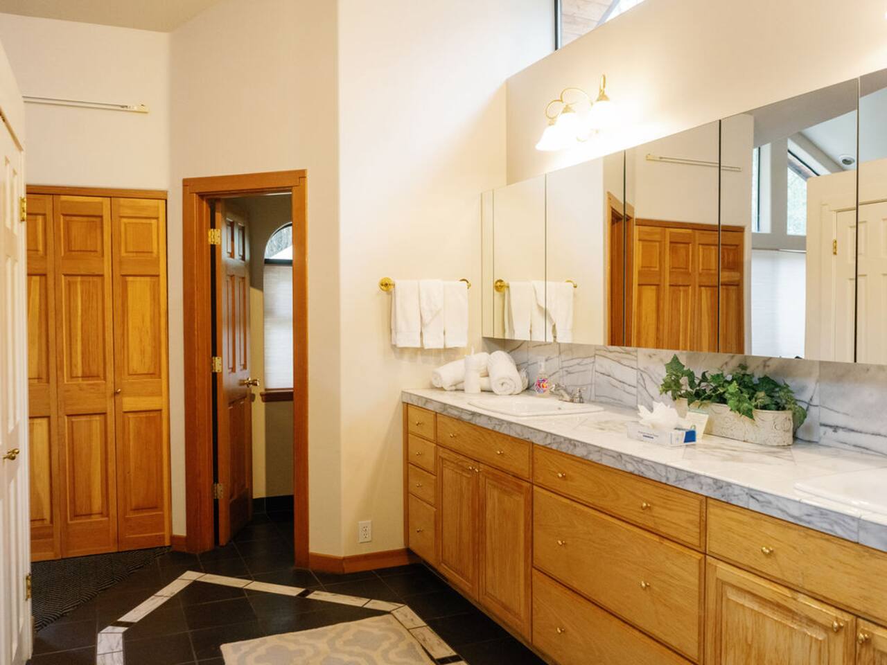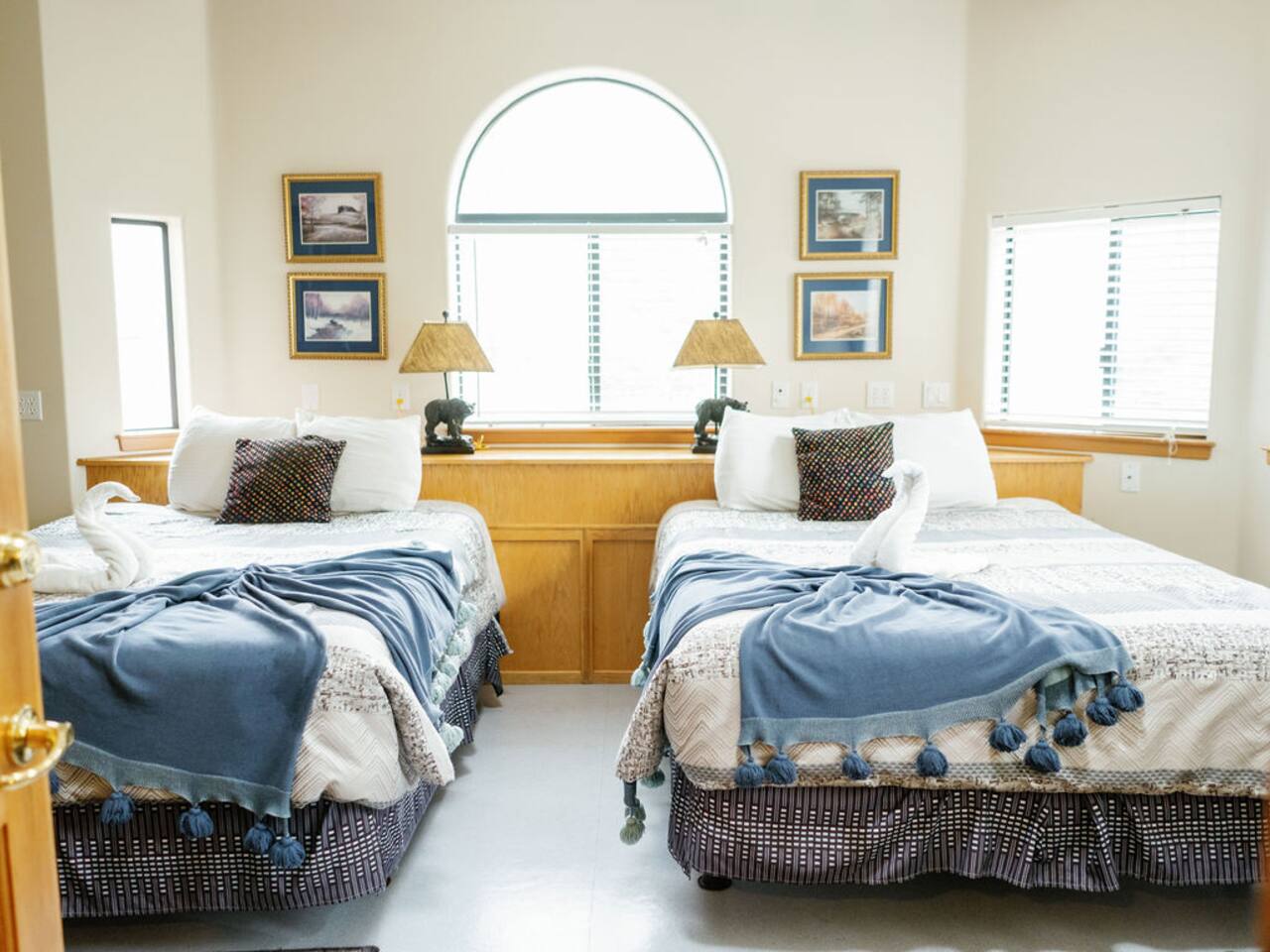 Hunter House offers plenty of room to relax, reconnect, and enjoy time in the mountains — just 10.6 miles from Yosemite National Park. The main home features four bedrooms and generous shared spaces throughout. The master suite includes a king bed, a large private bath, and access to the outdoor shower. Two additional bedrooms have two queen beds each, while the fourth bedroom features a king bed and a cozy loft. A queen-size sofa sleeper is available in the living room for additional guests. The home also includes a spacious dining area, a full kitchen, a separate family room with additional sleeper sofas, and balconies that bring you even closer to nature. A separate, private-entry unit with two queen beds and its own full bathroom is also available to rent upon request — perfect for additional friends, family, or those looking for a little extra privacy.